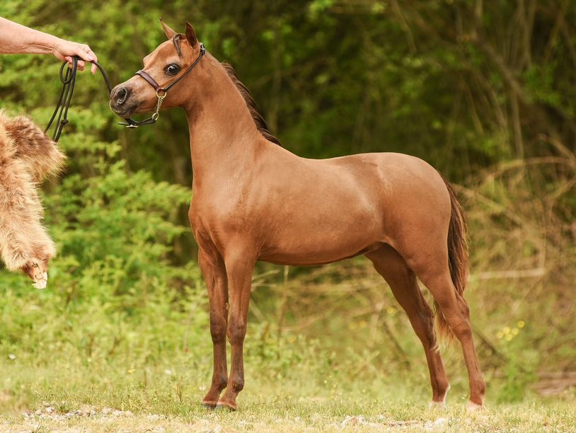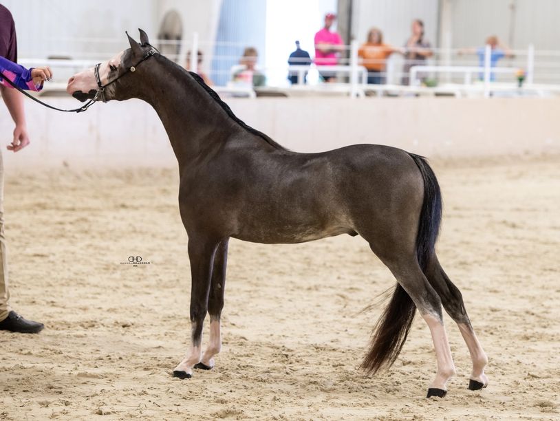 This little filly made a surprise entrance to the world a week before Nationals. She was born under the guidance of Kildow Stables West and already has a fan club in Indiana! Born with 7.5" Cannons, she is anticipated to mature under 34".